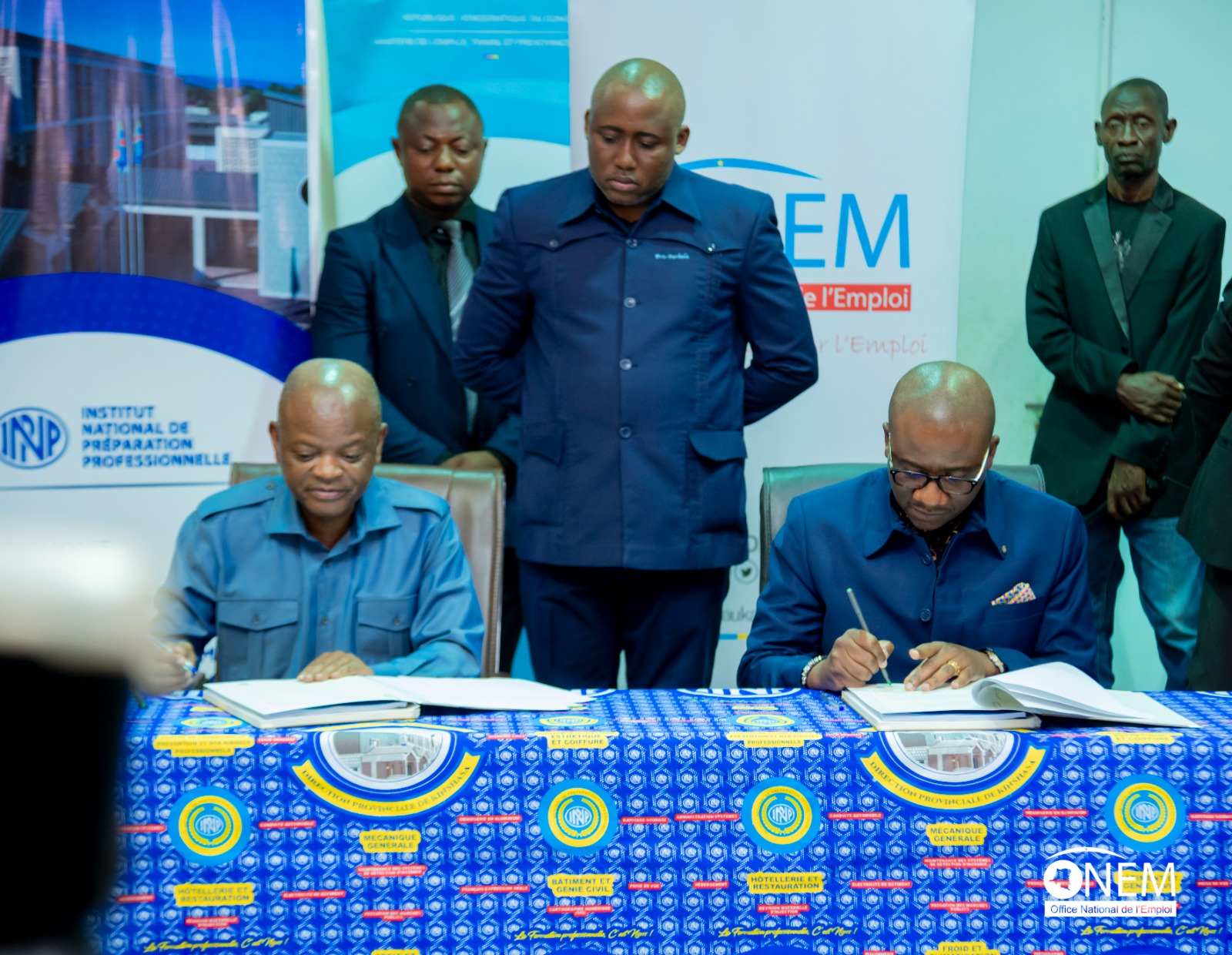 Nous (ONEM) sommes le service public de l’emploi de la République Démocratique du CONGO. L’ONEM fonctionne sous la forme d’un établissement public à caractère technique et social, jouissant de la personnalité juridique et d’autonomie financière et administrative. Il a été institué à la fois par la loi n°015/2002 du 16 octobre 2002 portant code du travail en ses articles 204 à 207 et par le décret présidentiel n°081/2002 du 03 juillet 2002.